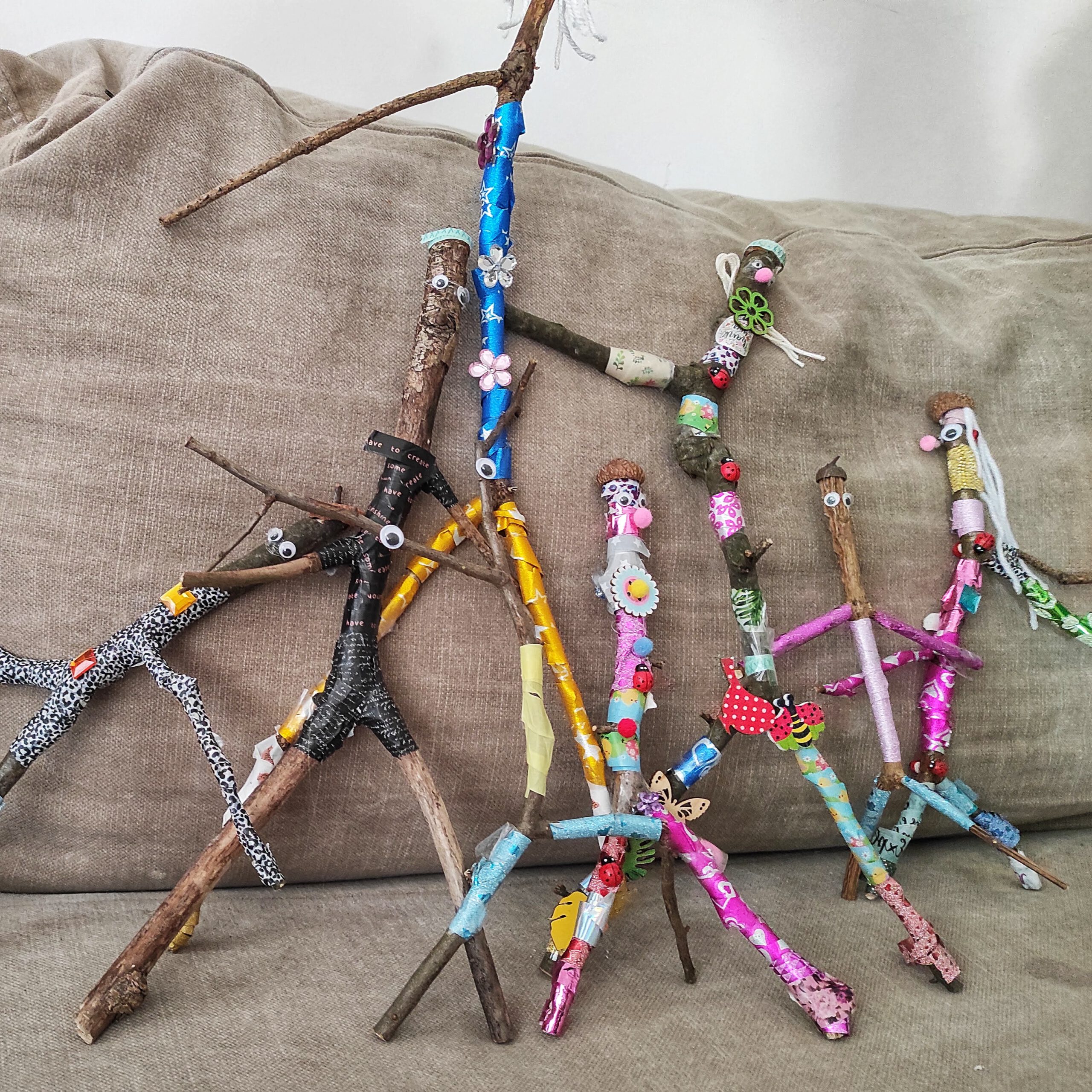 Bei einem Kindergeburtstag mit ausschließlich Mädchen darf eine Bastelaktion natürlich nicht fehlen. Zur Vorbereitung auf diese kreative Aufgabe ging ich in den Wald und sammelte Stöcke, die irgendwie nach kleinen Figuren aussahen – mit Fantasie sollten zwei Arme und zwei Beine erkennbar sein, sodass sie sich in Apfelmännchen verwandeln ließen. Gurkenhut, Spargelzahn und Bohnenhals würden sich sicher über neue Freunde freuen.